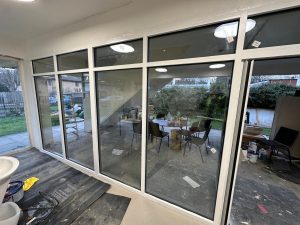 Our client in Chelmsford had recently installed new curtain walling and doors as part of an office refurbishment. While the installation was successful, there were noticeable colour discrepancies between the new sections and the existing frames. The mismatch affected the overall appearance of the building, and the client wanted a solution that would create a consistent, professional finish throughout.