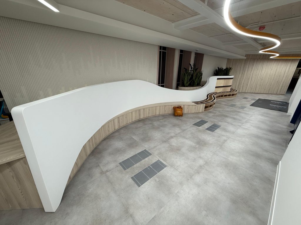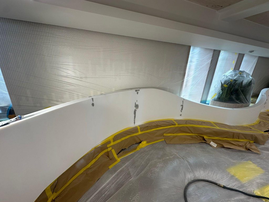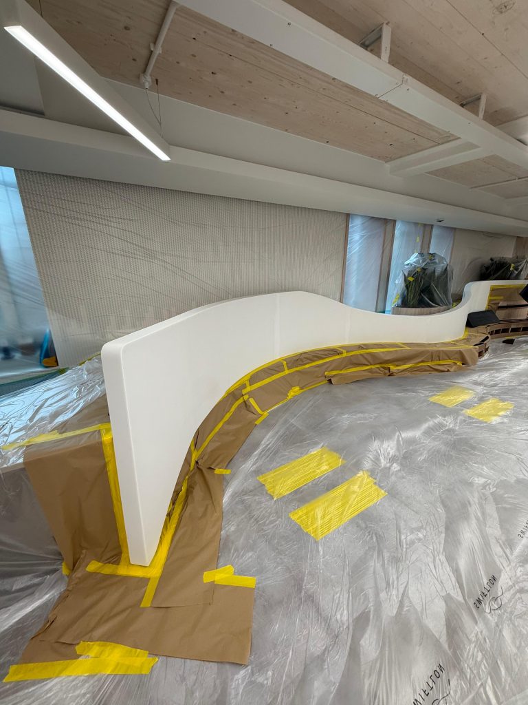 Our client in Marylebone had recently completed an interior fit-out project. While most of the space was finished to a high standard, there were visible imperfections along the joints of the reception seating area. As this was a key focal point within a completed environment, the finish needed to be corrected without causing disruption or damage to surrounding surfaces.