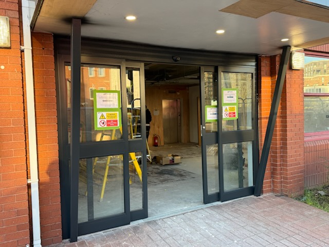 Our client in Harrow wanted to refresh the appearance of a commercial building’s main entrance. The existing automatic door system was still fully functional, but visually tired. Replacing the system would have been costly and disruptive, so the client was looking for a professional on-site respray that would restore the doors and frames without interrupting day-to-day access.
